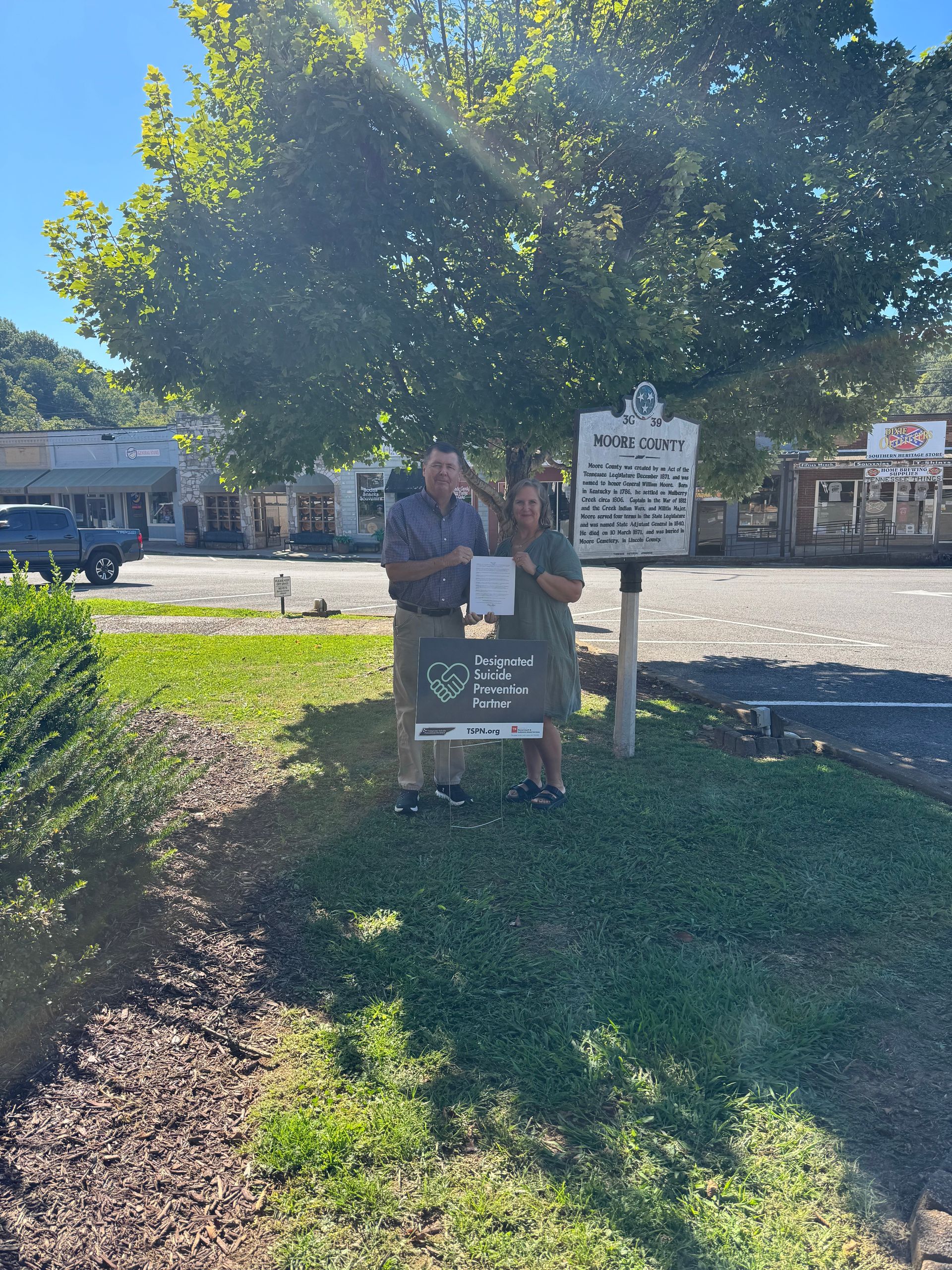 This photo of the town square in Shelbyville shows one the TSPN yard signs incorporated into this year's Suicide Prevention Awareness Month proclamation campaign effort. Regional Director Mary Anne Christian provided the mayor's office with the sign when she procured the Suicide Prevention Awareness Month proclamation from Bedford County.